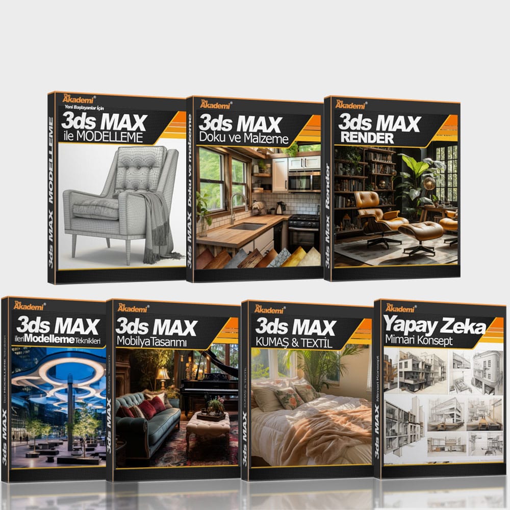 Sıfırdan 3d Tasarım Öğrenmek isteyenler için, Türkçe hazırlanmış en geniş kapsamlı 3ds Max Eğitimidir. Başlangıçtan İleri Seviyeye Eksiksiz bir Video Eğitim Paketi. 3d Tasarımın Modelleme – Doku ve Renklendirme – Işık ve Render gibi tüm süreçleri, Mobilya, Tekstil oluşturmanın tüm adımlarını kapsar. Yapay Zeka araçlarının kullanımı ile 300’ün Üzerinde Örnek Uygulama.